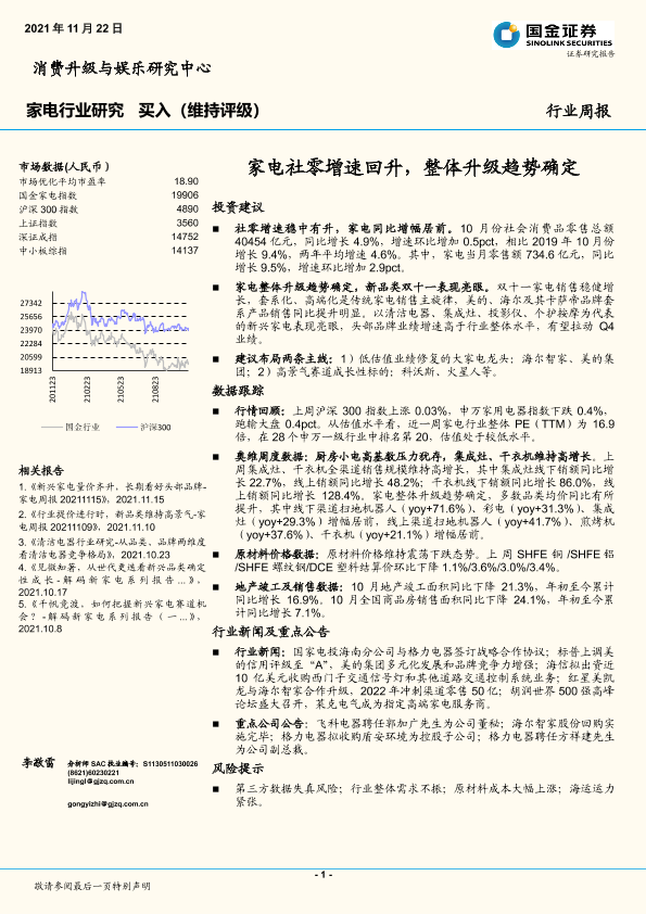 【国金证券】【20211122】家电社零增速回升,整体升级趋势确定-14页