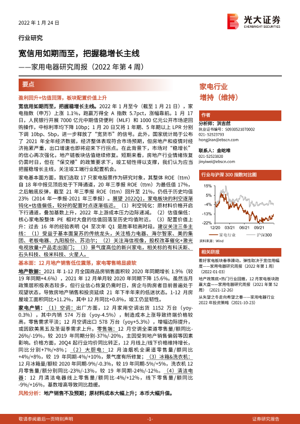 【光大证券】【20220124】家用电器研究周报(2022年第4周):宽信用如期而至,把握稳增长主线-24页