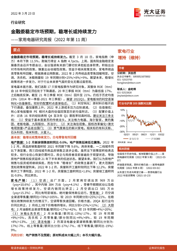 【光大证券】【20220323】家用电器研究周报(2022年第11周):金融委稳定市场预期,稳增长或持续发力-24页