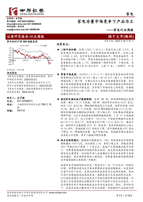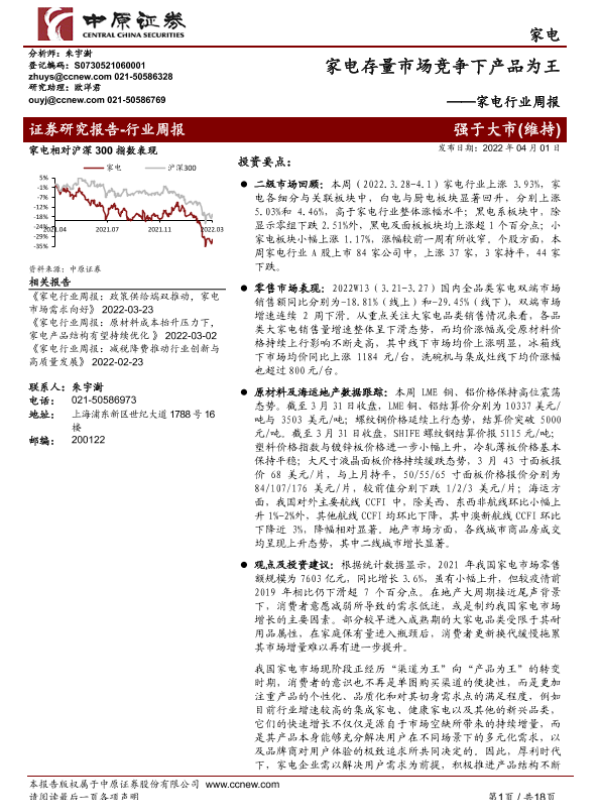 【中原证券】【20220401】家电存量市场竞争下产品为王-18页