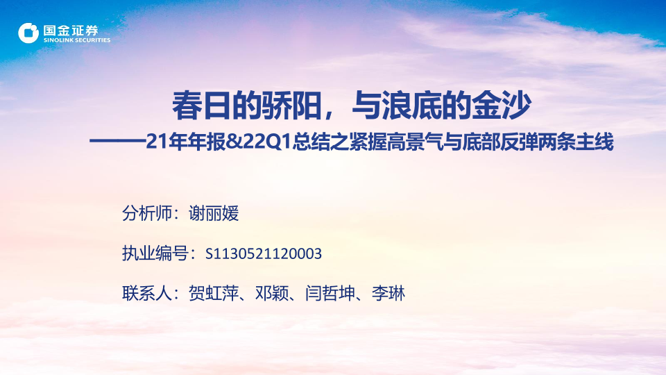 【国金证券】【20220502】春日的骄阳,与浪底的金沙——21年年报&22Q1总结之紧握高景气与底部反弹两条主线-42页