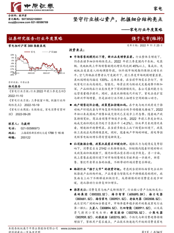 【中原证券】【20221125】20221125-中原证券-家电行业年度策略:坚守行业核心资产,把握细分结构亮点-34页
