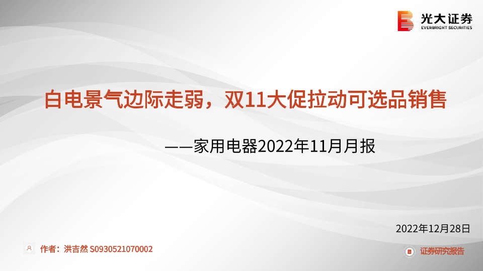 【光大证券】【20221228】家用电器2022年11月月报:白电景气边际走弱,双11大促拉动可选品销售-40页