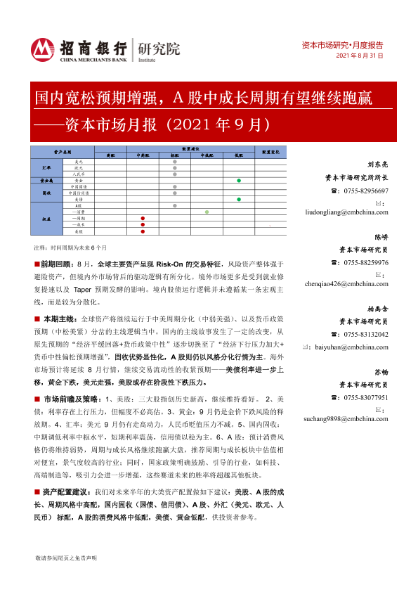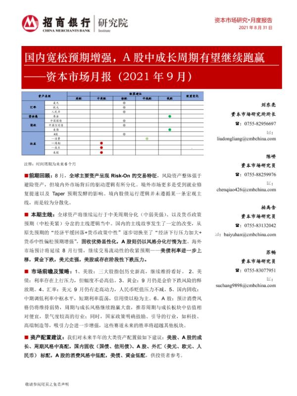 【招商银行】【20210831】国内宽松预期增强,A股中成长周期有望继续跑赢 ——资本市场月报(2021年 9月)-24页
