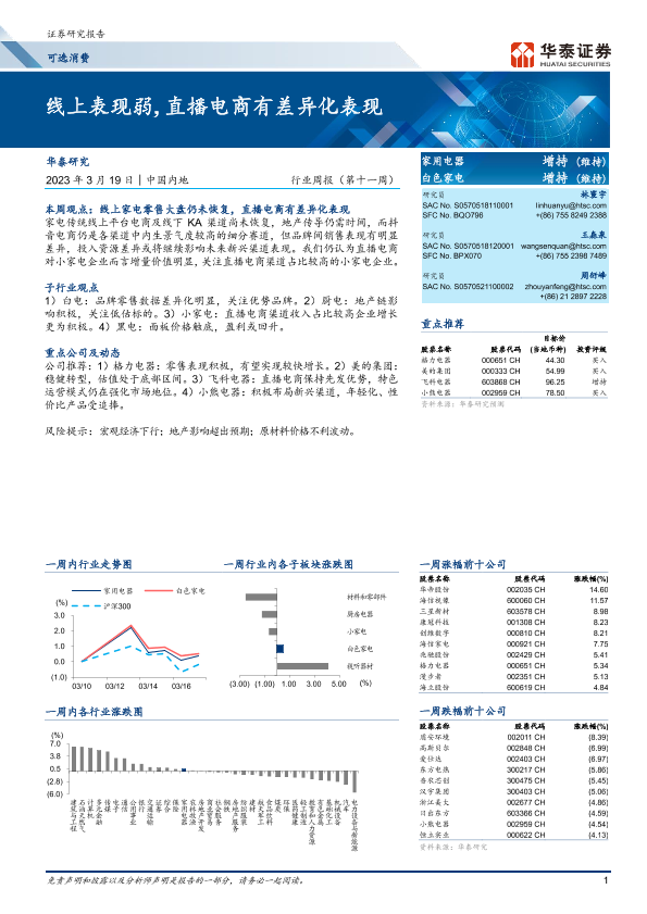 【华泰证券】【20230319】20230319-华泰证券-可选消费行业周报(第十一周):线上表现弱,直播电商有差异化表现-15页