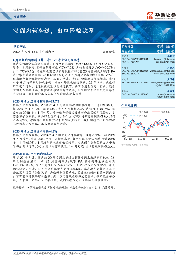 【华泰证券】【20230519】家用电器专题研究:空调内销加速,出口降幅收窄-10页