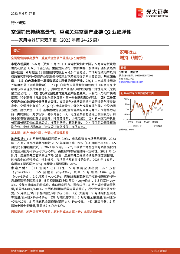 【光大证券】【20230627】2023年第24-25周家用电器研究双周报:空调销售持续高景气,重点关注空调产业链Q2业绩弹性-24页