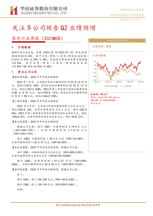 【华西证券】【20230717】家电行业周报(2023W28):关注多公司预告Q2业绩预增-13页