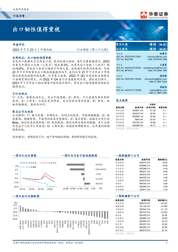 【华泰证券】【20230723】可选消费行业周报(第二十九周):出口韧性值得重视-16页