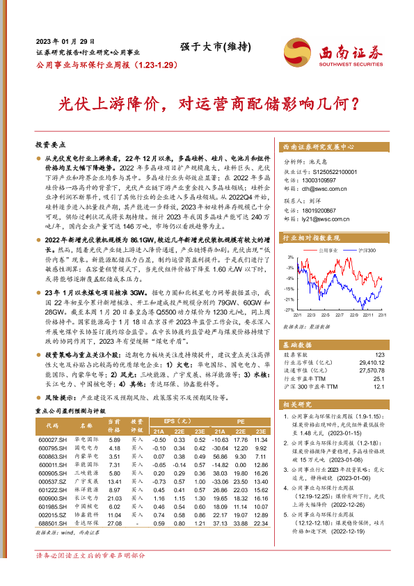 【西南证券】【20230129】公用事业与环保行业周报:光伏上游降价,对运营商配储影响几何?-26页