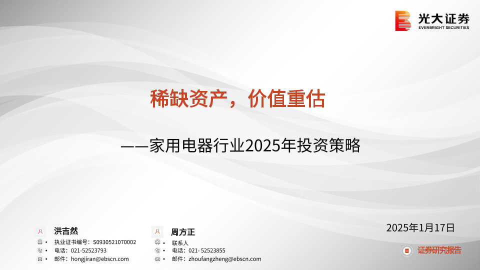 【光大证券】【20250117】家用电器行业2025年投资策略:稀缺资产,价值重估-40页