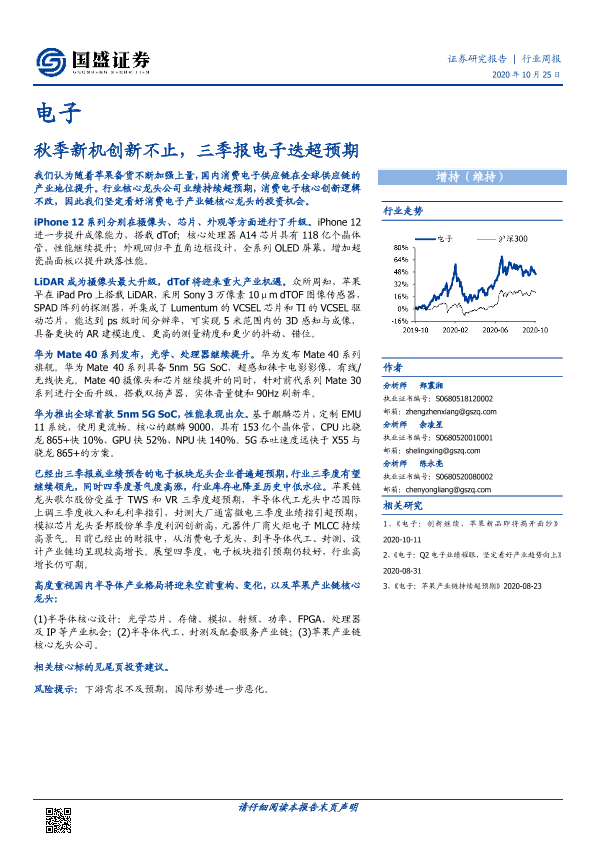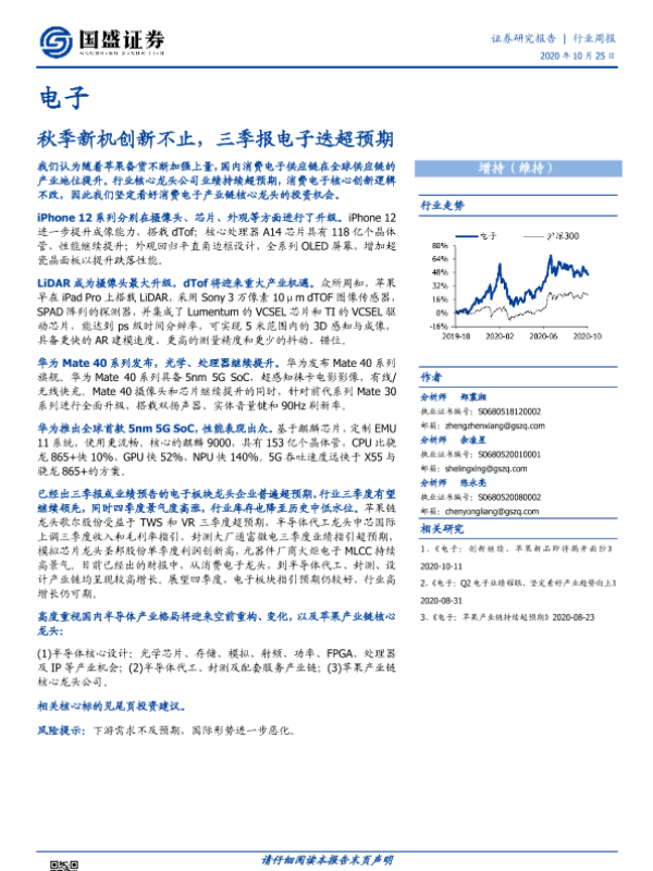 【国盛证券】【20201025】电子行业周报:秋季新机创新不止,三季报电子迭超预期-16页