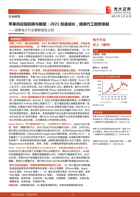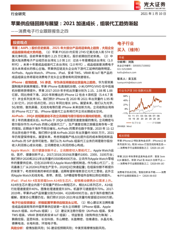 【光大证券】【20210110】消费电子行业跟踪报告之四:苹果供应链回顾与展望:2021加速成长,组装代工趋势渐起-9页