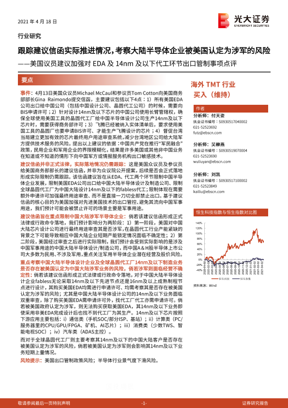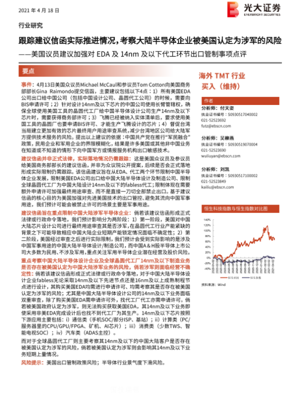 【光大证券】【20210418】美国议员建议加强对EDA及14nm及以下代工环节出口管制事项点评-2页
