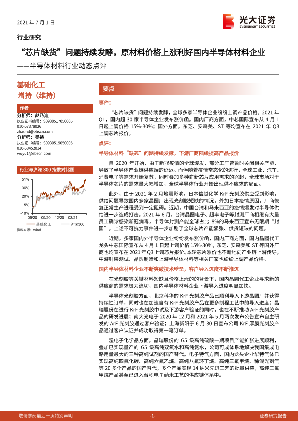 【光大证券】【20210701】半导体材料行业动态点评:“芯片缺货”问题持续发酵,原材料价格上涨利好国内半导体材料企业-3页