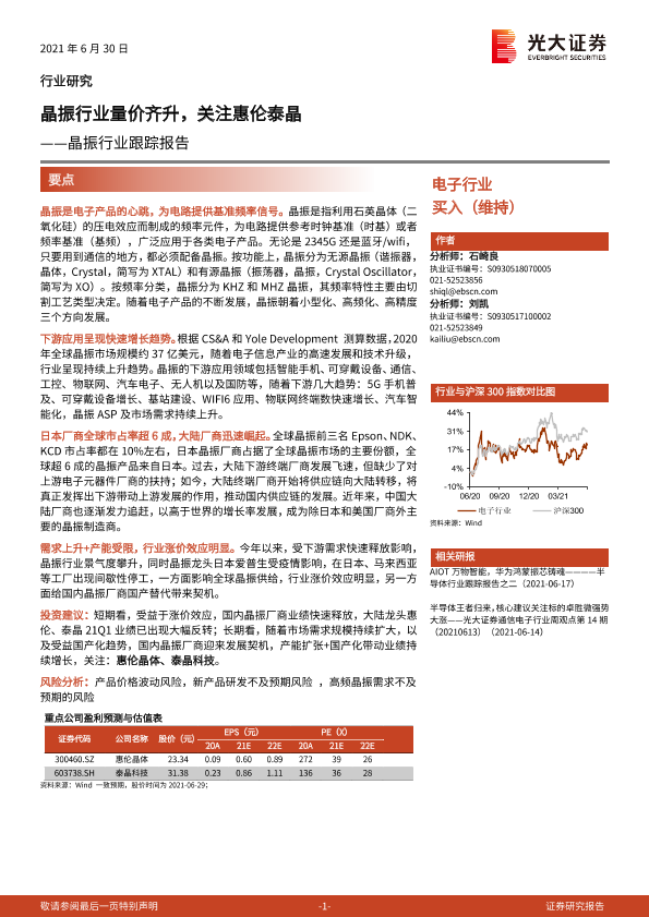 【光大证券】【20210630】晶振行业量价齐升,关注惠伦泰晶-14页
