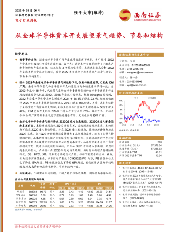 【西南证券】【20220306】电子行业周报:从全球半导体资本开支展望景气趋势、节奏和结构-46页