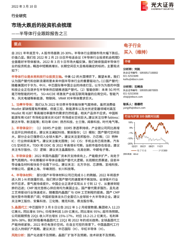 【光大证券】【20220310】市场大跌后的投资机会梳理——半导体行业跟踪报告之三-2页