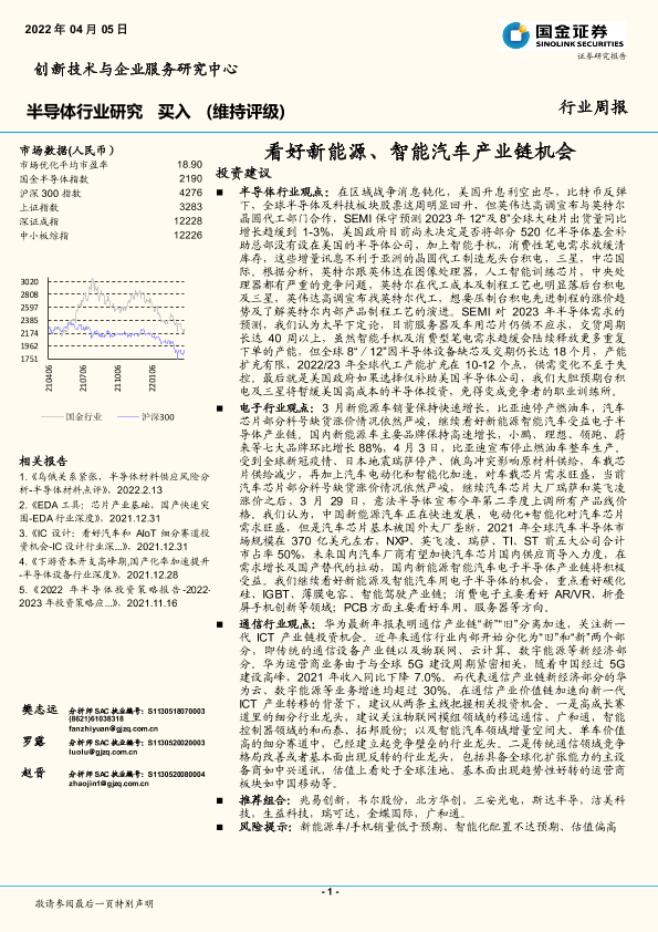 【国金证券】【20220405】20220405-国金证券-半导体行业研究:看好新能源、智能汽车产业链机会-18页
