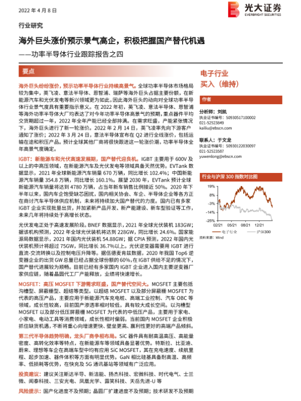 【光大证券】【20220408】功率半导体行业跟踪报告之四:海外巨头涨价预示景气高企,积极把握国产替代机遇-3页