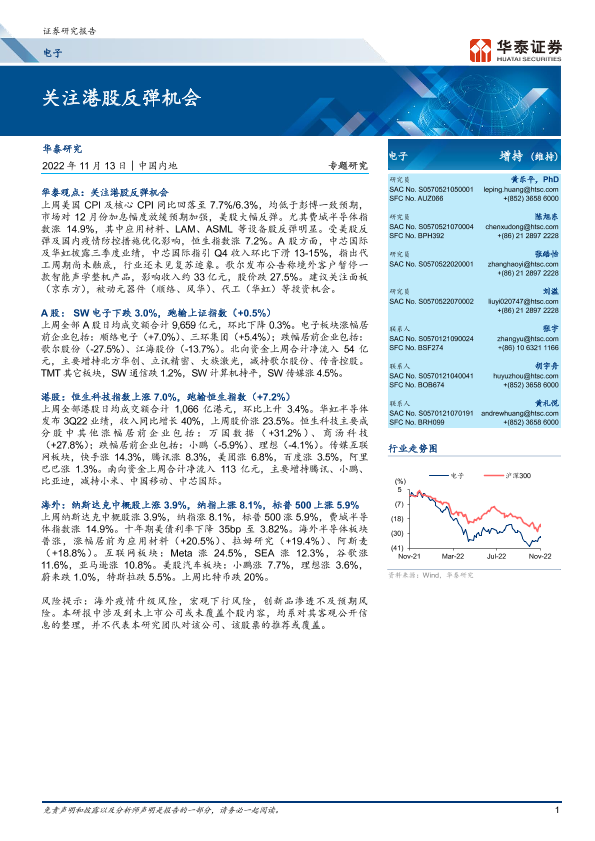 【华泰证券】【20221113】20221113-华泰证券-电子专题研究:关注港股反弹机会-24页