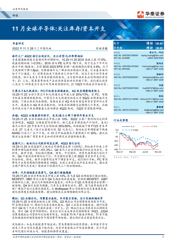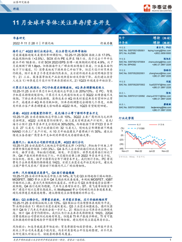 【华泰证券】【20221128】11月全球半导体 关注库存/资本开支-40页
