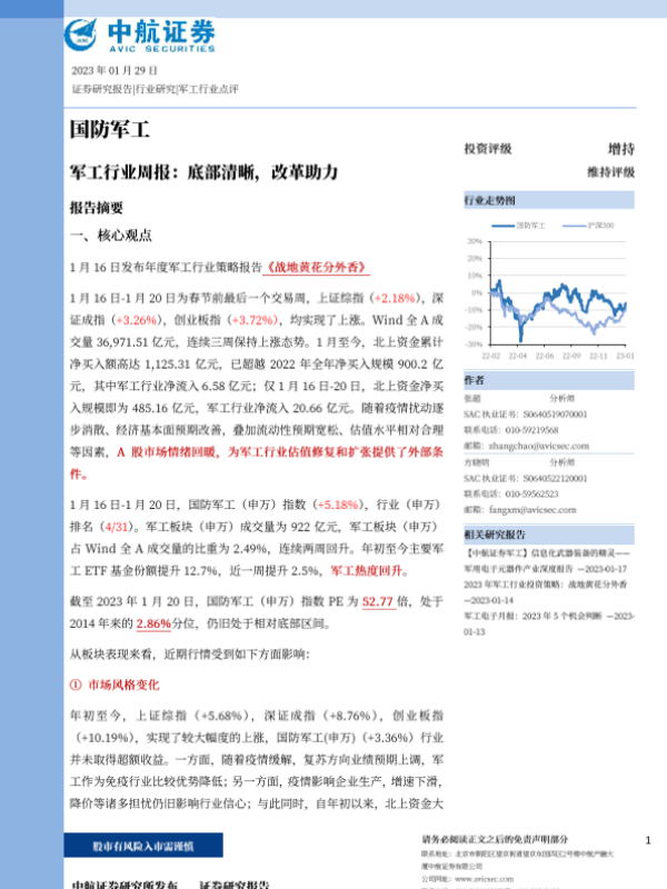 【中航证券】【20230129】军工行业周报:底部清晰,改革助力-29页