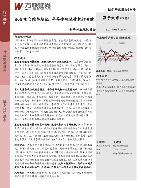 【万联证券】【20230227】20230227-万联证券-电子行业跟踪报告:基金重仓维持超配,半导体领域受机构青睐-11页