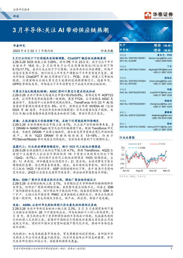 【华泰证券】【20230402】3月半导体 关注AI带动供应链热潮-39页