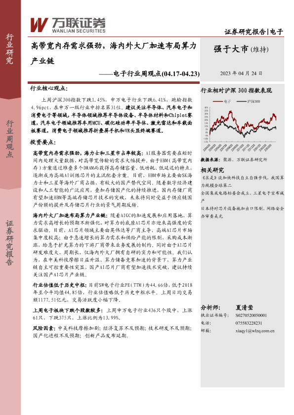 【万联证券】【20230424】20230424-万联证券-电子行业周观点:高带宽内存需求强劲,海内外大厂加速布局算力产业链-19页