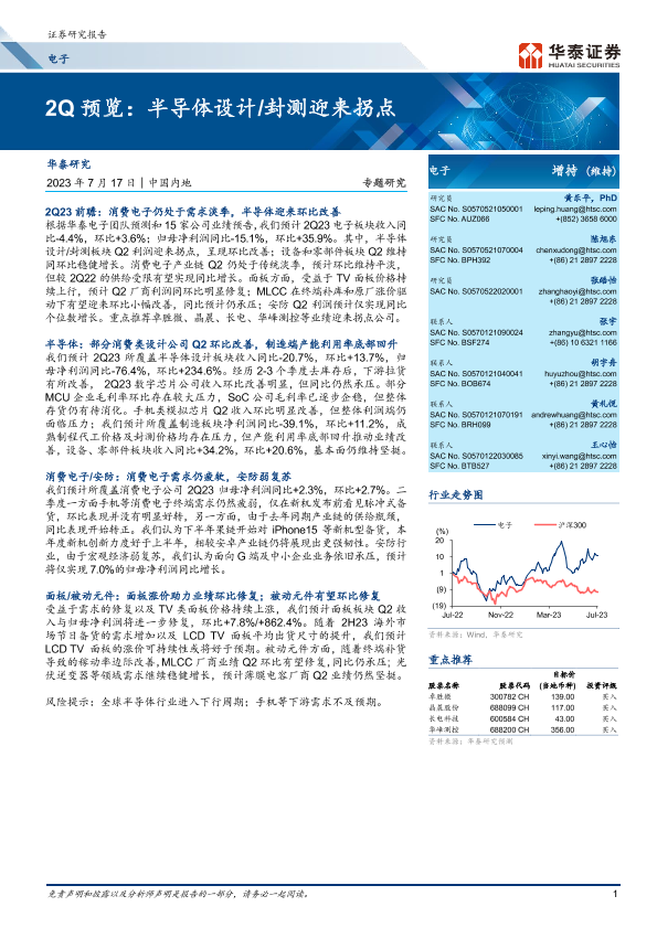 【华泰证券】【20230717】2Q预览:半导体设计/封测迎来拐点-10页