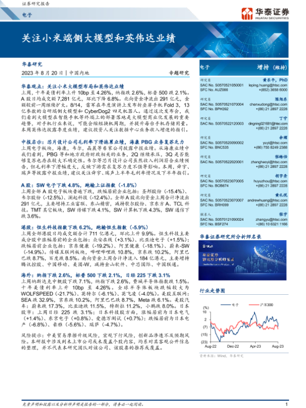 【华泰证券】【20230820】20230820-华泰证券-电子专题研究:关注小米端侧大模型和英伟达业绩-48页