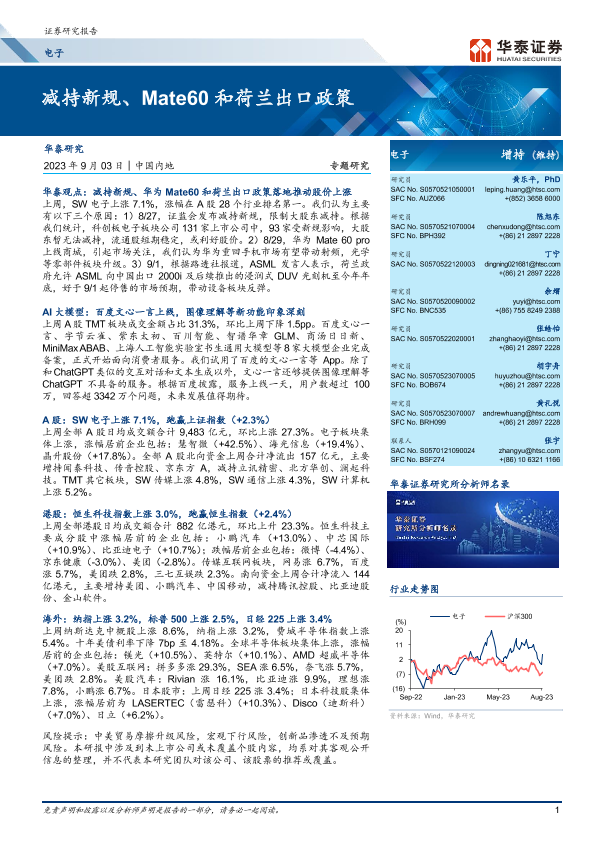 【华泰证券】【20230903】电子专题研究:减持新规、Mate60和荷兰出口政策-47页