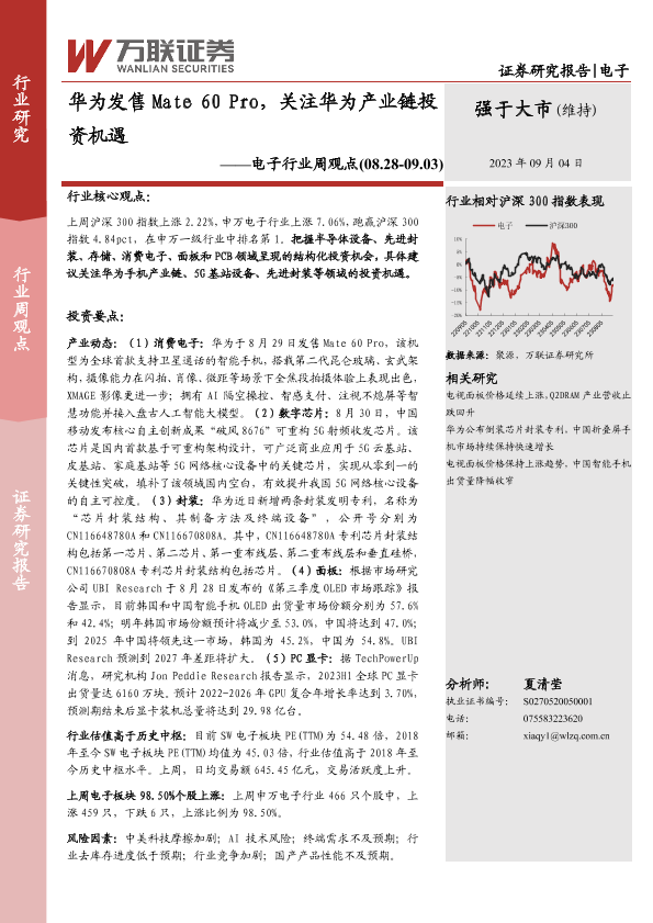 【万联证券】【20230904】华为发售Mate 60 Pro,关注华为产业链投资机遇-14页