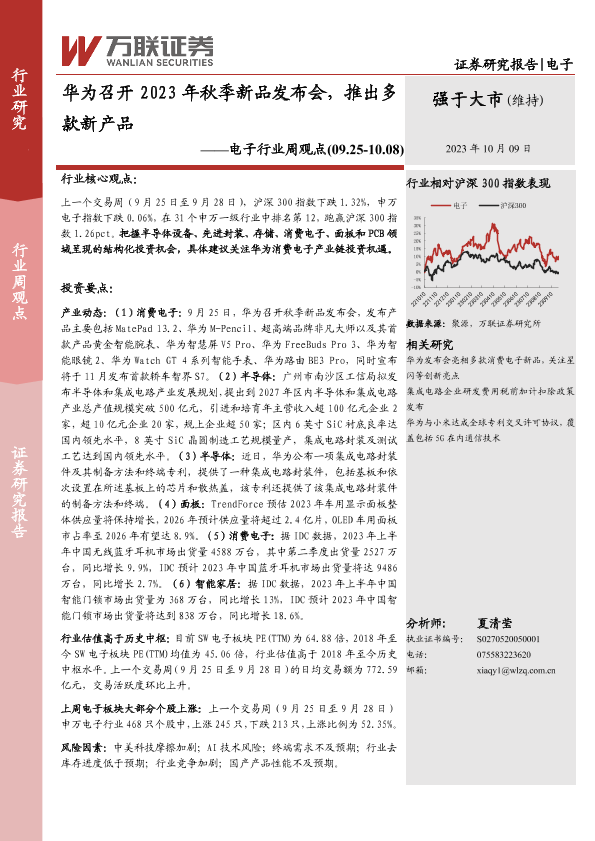 消费电子 半导体 秋季新品发布会 华为 面板
