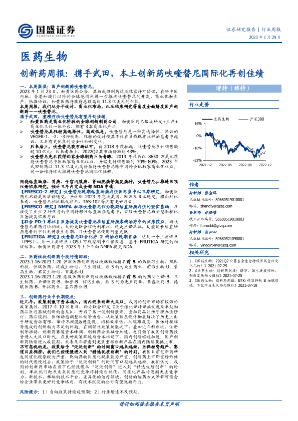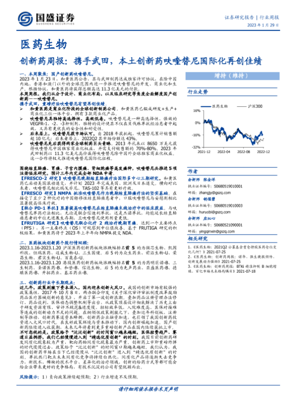 【国盛证券】【20230129】创新药周报:携手武田,本土创新药呋喹替尼国际化再创佳绩-18页