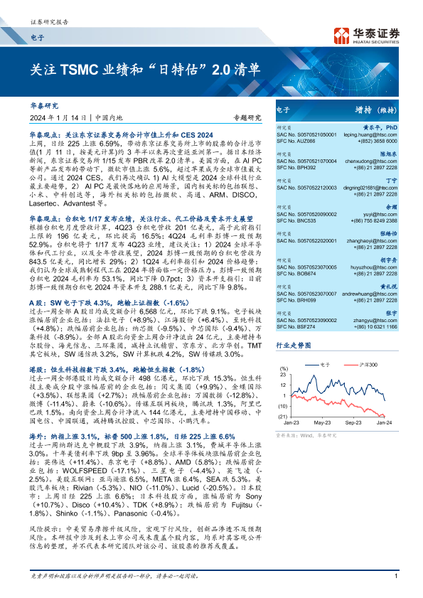 【华泰证券】【20240114】电子专题研究:关注TSMC业绩和“日特估”2.0清单-44页
