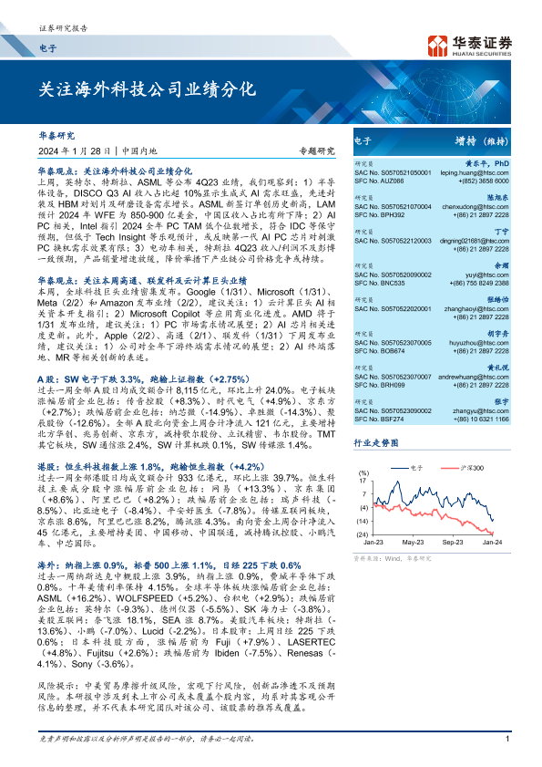 【华泰证券】【20240128】电子专题研究:关注海外科技公司业绩分化-44页