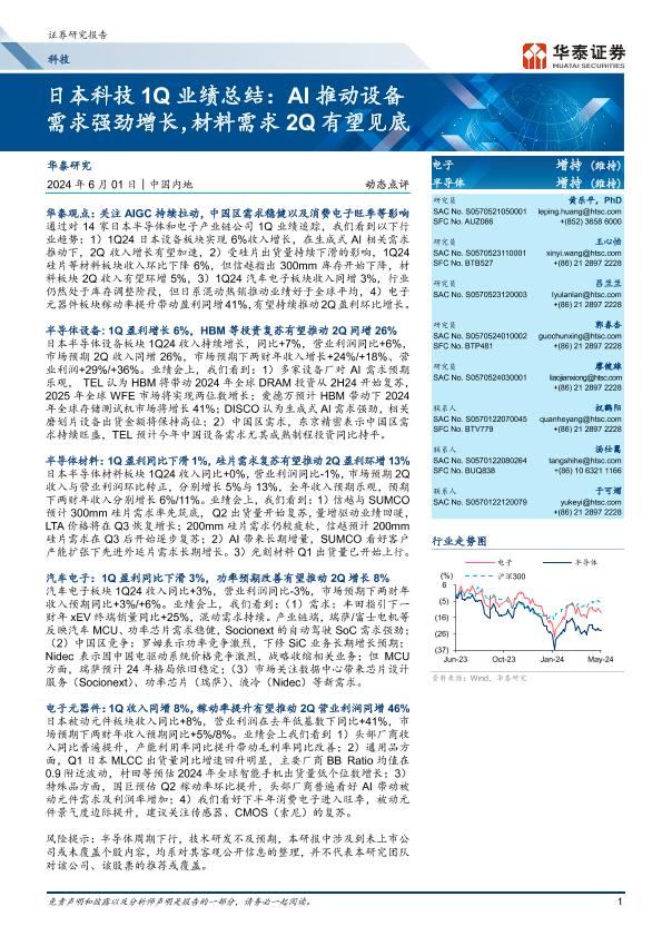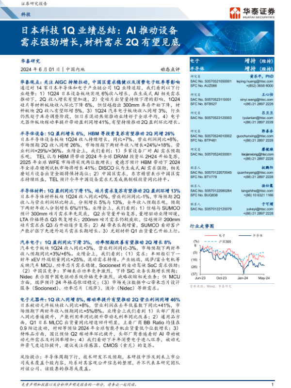 【华泰证券】【20240601】日本科技1Q业绩总结:AI推动设备需求强劲增长,材料需求2Q有望见底-16页