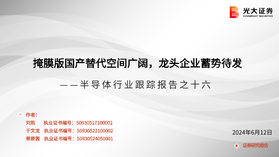 【光大证券】【20240612】20240612-光大证券-半导体行业跟踪报告之十六:掩膜版国产替代空间广阔,龙头企业蓄势待发-40页