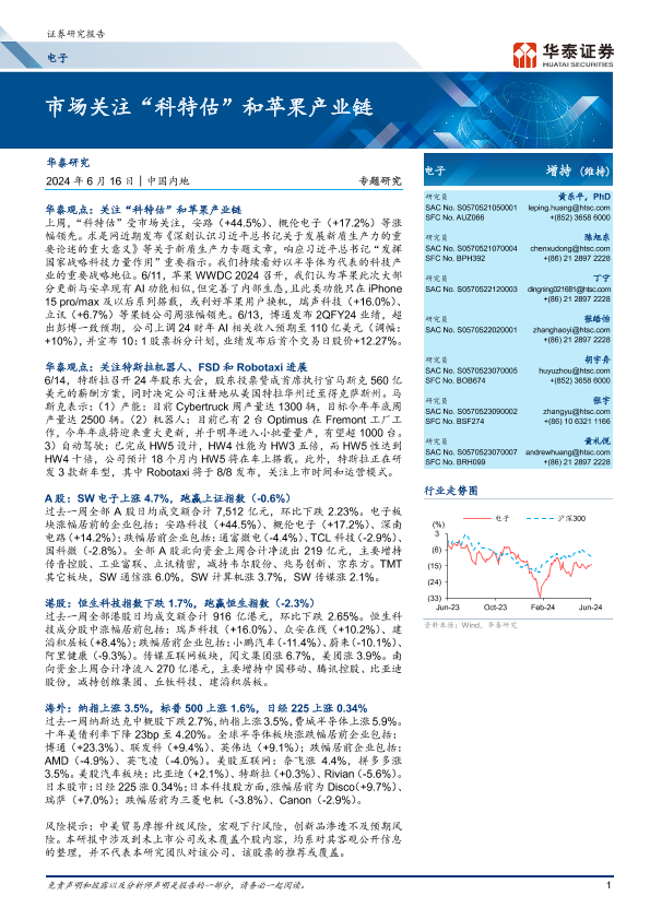 【华泰证券】【20240616】20240616-华泰证券-电子行业专题研究:市场关注“科特估”和苹果产业链-48页