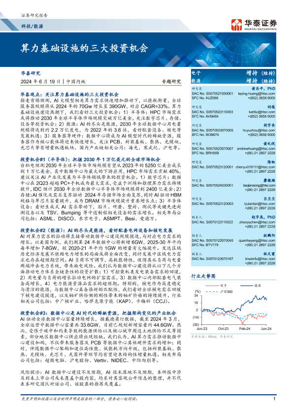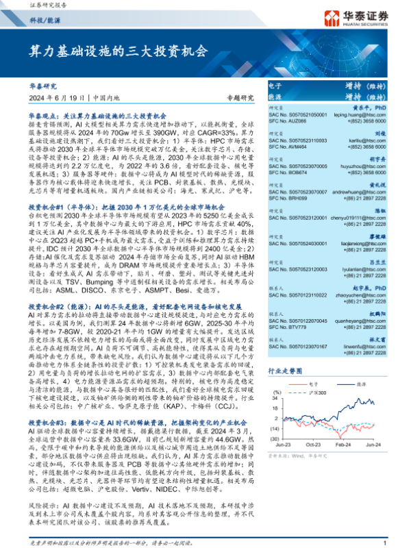 【华泰证券】【20240619】科技 能源专题研究:算力基础设施的三大投资机会-40页