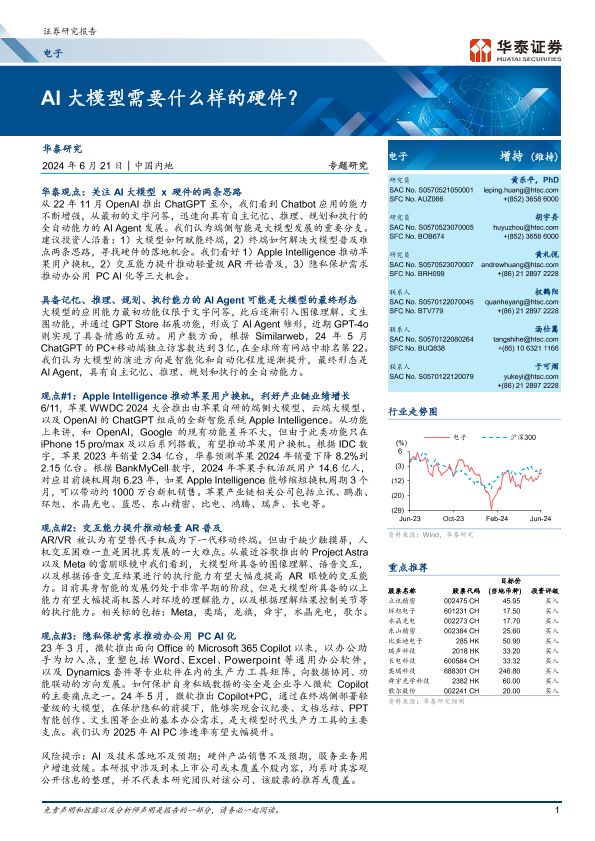 【华泰证券】【20240621】电子专题研究:AI大模型需要什么样的硬件?-40页