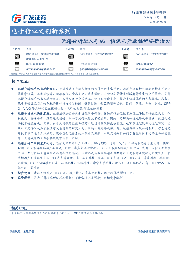 【广发证券】【20241111】电子行业之创新系列1:光谱分析进入手机,摄像头产业链增添新活力-24页