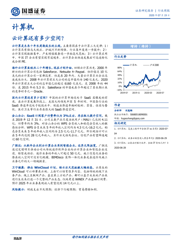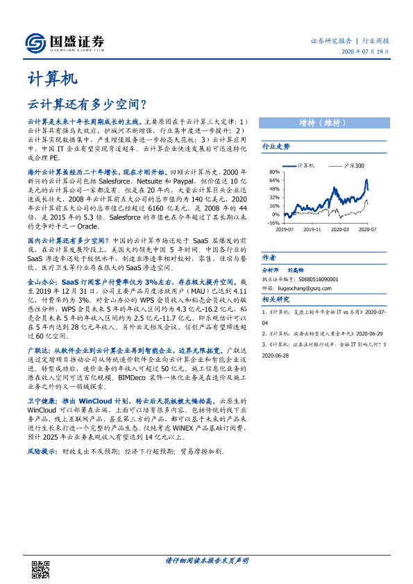 【国盛证券】【20200719】计算机行业周报:云计算还有多少空间?-16页