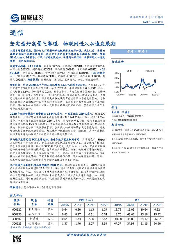 【国盛证券】【20200719】通信行业周报:坚定看好高景气赛道,物联网进入加速发展期-12页