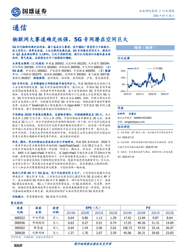 【国盛证券】【20200726】通信行业周报:物联网大赛道确定性强,5G专网潜在空间巨大-13页