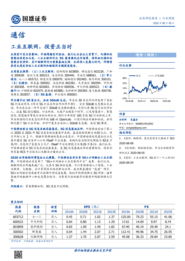 【国盛证券】【20200809】通信行业周报:工业互联网,投资正当时-11页