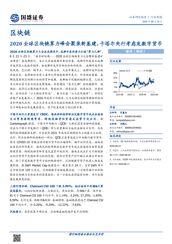 【国盛证券】【20200825】2020全球区块链算力峰会聚焦新基建,卡塔尔央行考虑发数字货币-8页