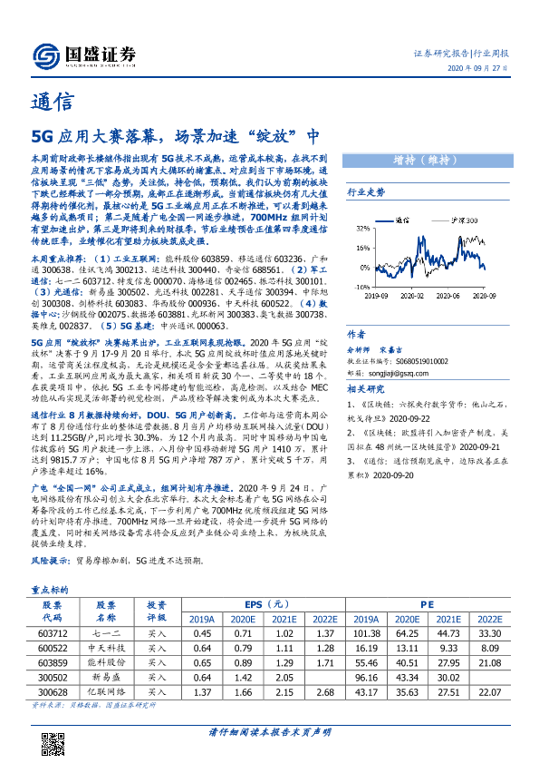 【国盛证券】【20200927】20200927-国盛证券-通信行业周报:5G应用大赛落幕,场景加速“绽放”中-12页